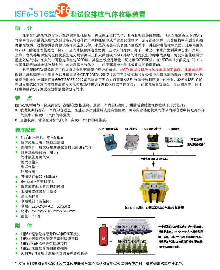 輕便式iSF6-516型SF6 測試儀排放氣體收集裝置專為電力現(xiàn)場收集SF6 測試儀排放氣體而設(shè)計,該收集裝置安裝在一個運(yùn)輸箱里,用于收集并儲存SF6 測試儀器排放出的SF6 氣體。