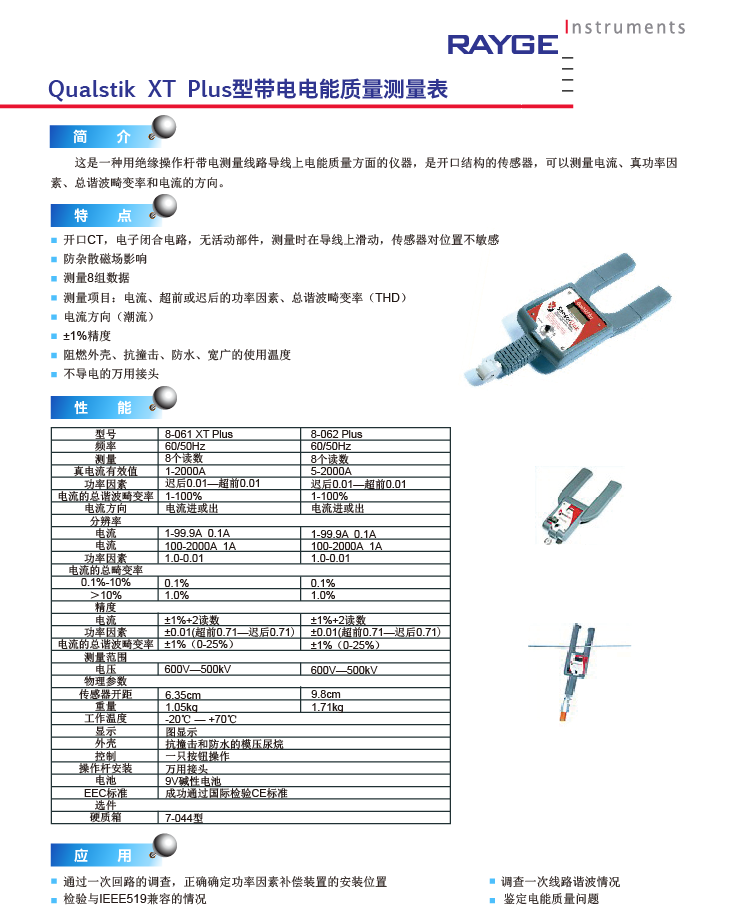 這是一種用絕緣操作桿帶電測(cè)量線路導(dǎo)線上電能質(zhì)量方面的儀器,是開(kāi)口結(jié)構(gòu)的傳感器,可以測(cè)量電流、真功率因素、總諧波畸變率和電流的方向。