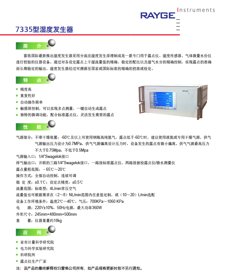 雷格國(guó)際最新推出濕度發(fā)生器采用分流法濕度發(fā)生原理制成是一款專門(mén)用于露點(diǎn)儀、濕度傳感器、氣體微量水份儀進(jìn)行校驗(yàn)的儀器設(shè)備。通過(guò)對(duì)各設(shè)定露點(diǎn)上干濕流量值的精確、穩(wěn)定的配比以及濕氣水分的精確控制,實(shí)現(xiàn)露點(diǎn)的準(zhǔn)確而長(zhǎng)期穩(wěn)定的輸出