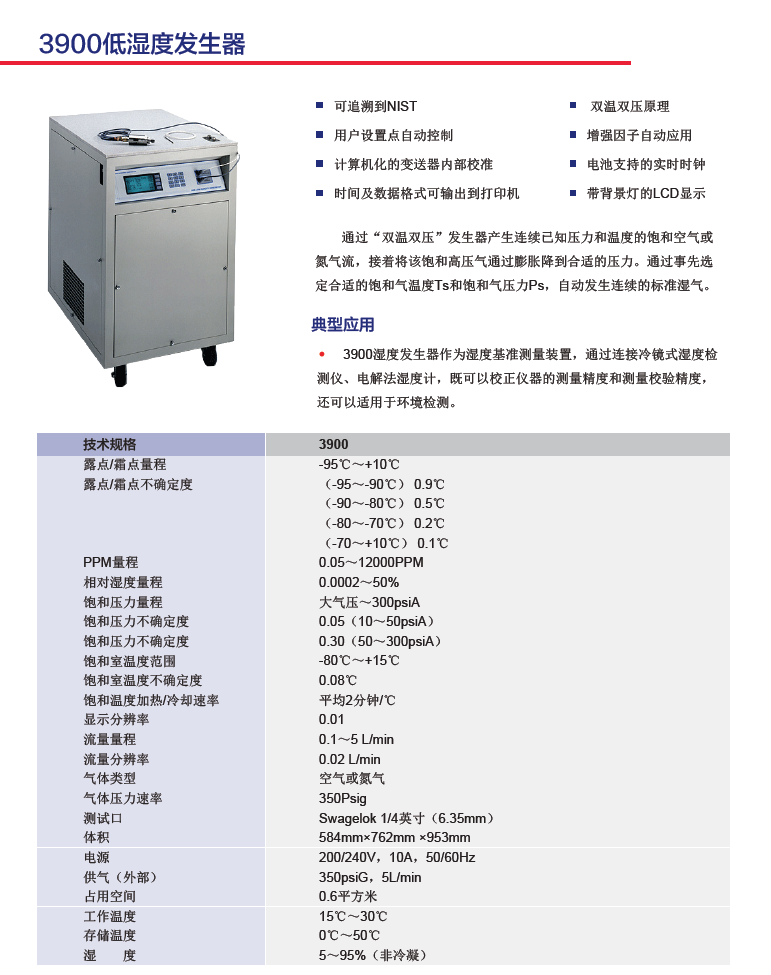 通過“雙溫雙壓”發(fā)生器產(chǎn)生連續(xù)已知壓力和溫度的飽和空氣或氮?dú)饬?,接著將該飽和高壓氣通過膨脹降到合適的壓力。通過事先選定合適的飽和氣溫度Ts和飽和氣壓力Ps,自動(dòng)發(fā)生連續(xù)的標(biāo)準(zhǔn)濕氣。