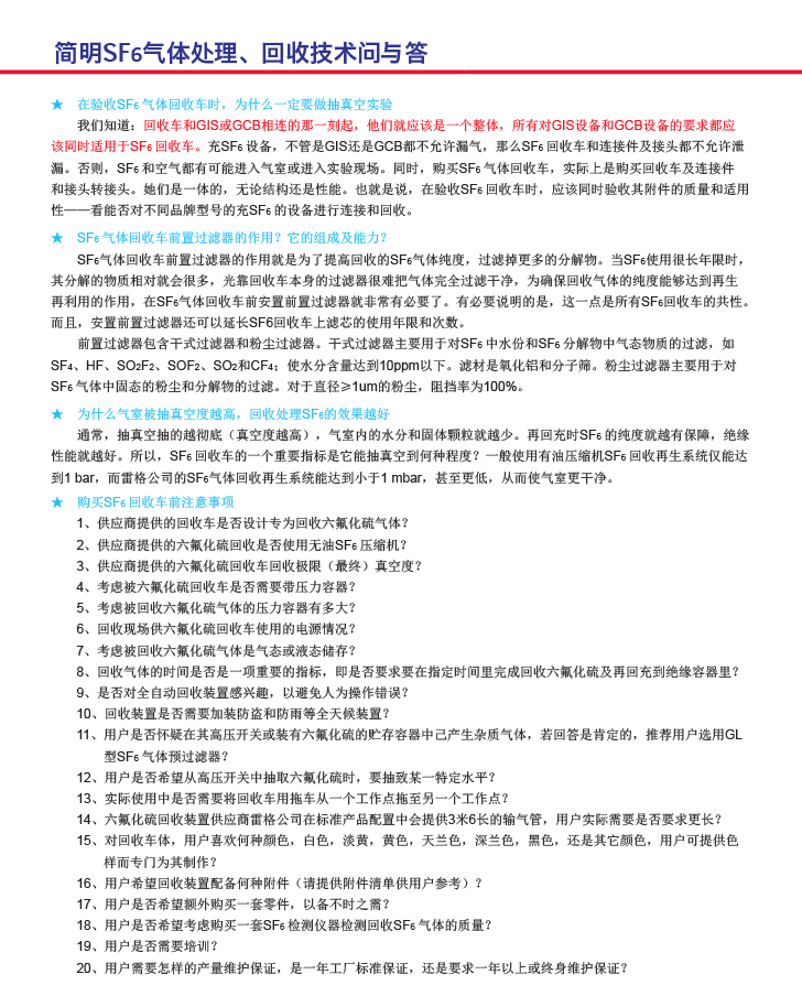 簡明SF6氣體處理、回收技術(shù)問與答